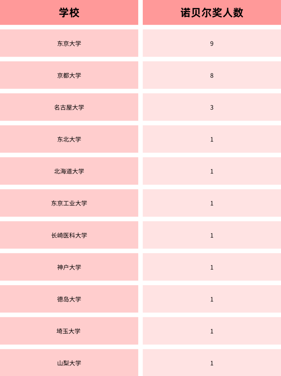 其中获奖人数最多的三所大学分别是东京大学、京都大学和名古屋大学!