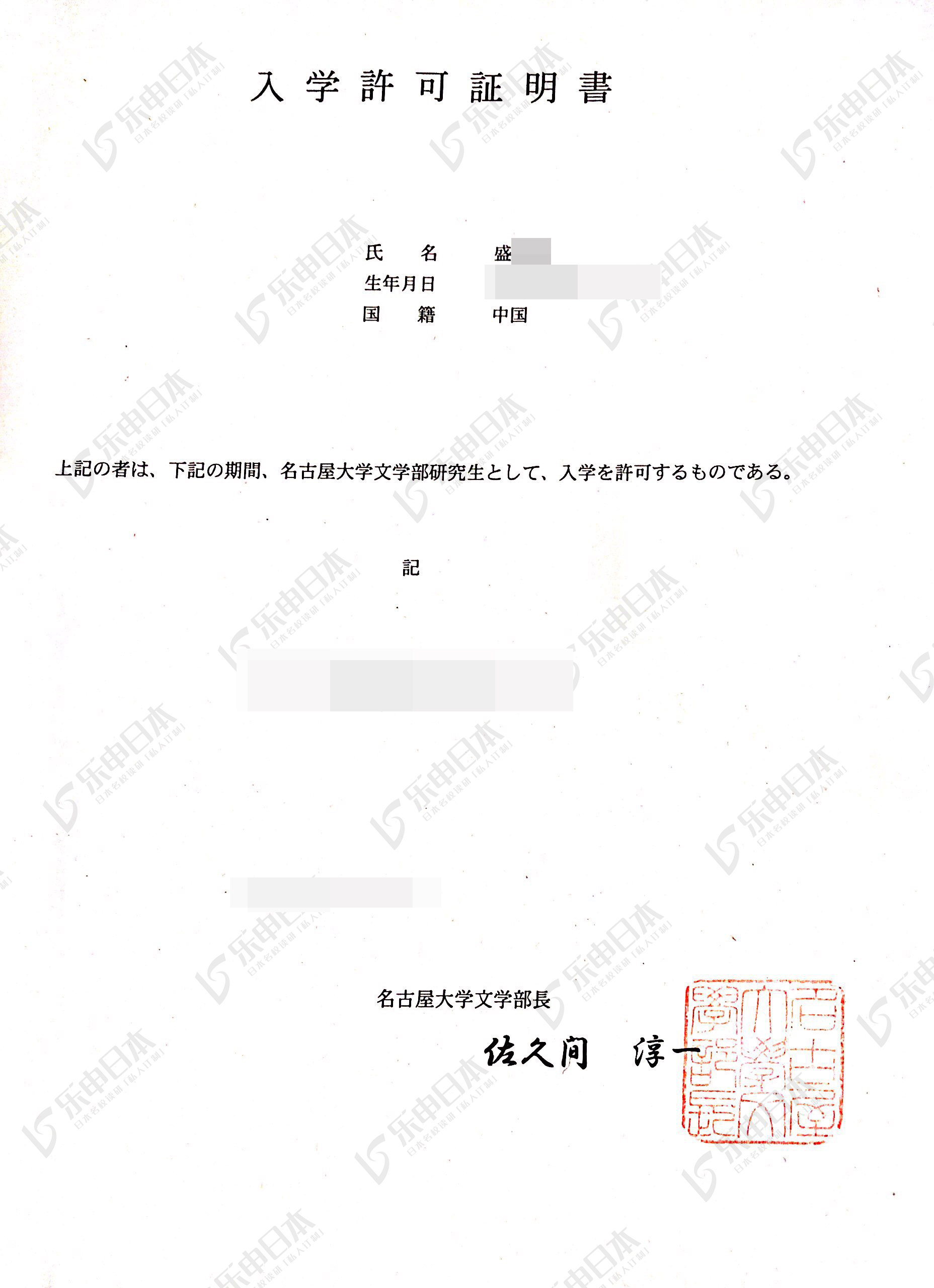 录取专业:名古屋大学——文学研究科